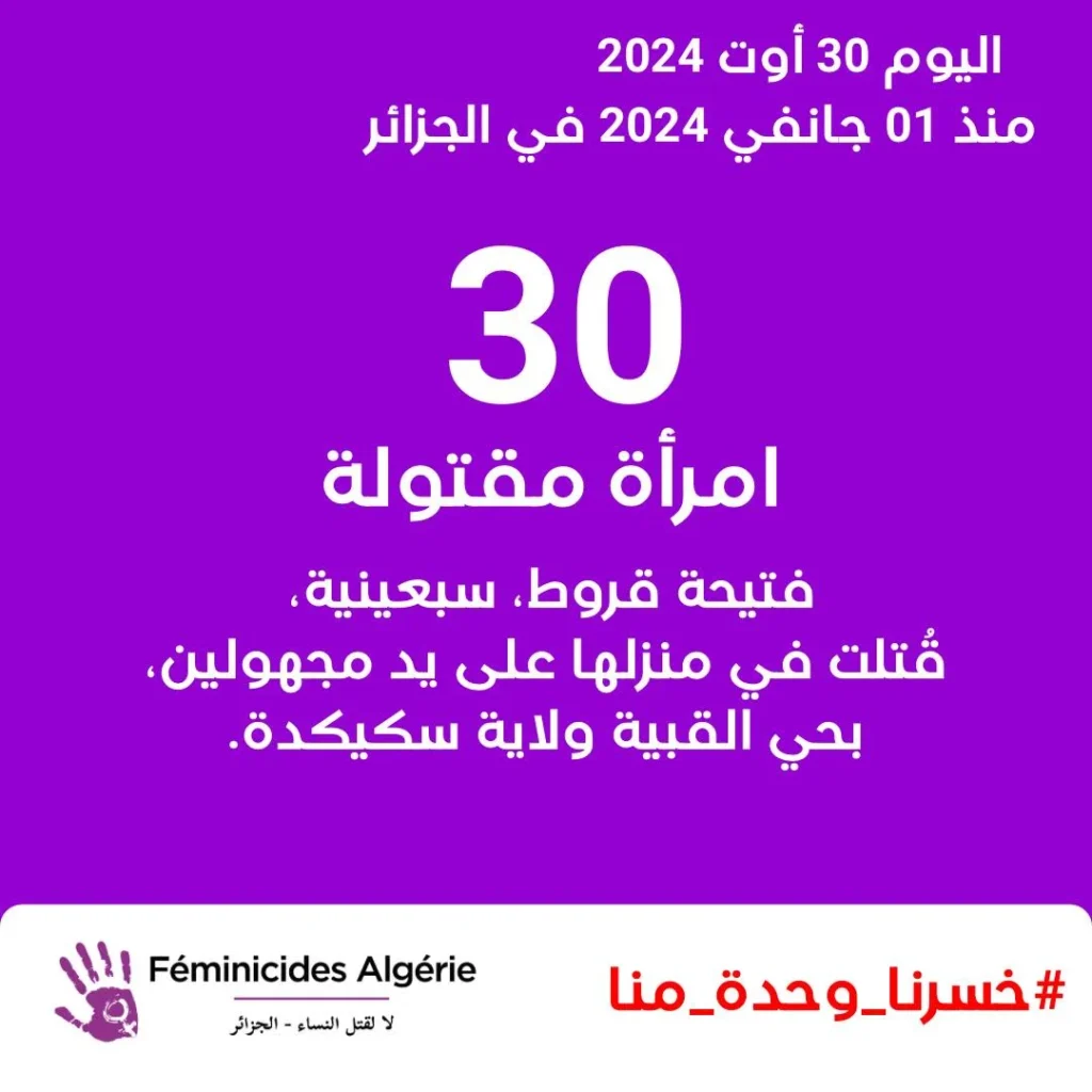 Ce féminicide, qui vient tristement s’ajouter à une longue liste de violences faites aux femmes en Algérie, porte à 31 le nombre de victimes depuis le début de l’année 2024. Cette nouvelle tragédie rappelle de manière alarmante l’urgence d’agir pour enrayer cette escalade de violence.