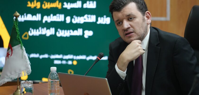 Lors d’une rencontre tenue ce mardi 26 novembre 2024, le ministre de la Formation et de l’Éducation professionnelle, M. Yacine Oualid, a réuni les directeurs de la formation professionnelle des différentes wilayas pour aborder les défis et opportunités du secteur. Cette réunion a permis de renforcer la communication avec les responsables régionaux et de définir des objectifs stratégiques pour moderniser la formation professionnelle en Algérie.
